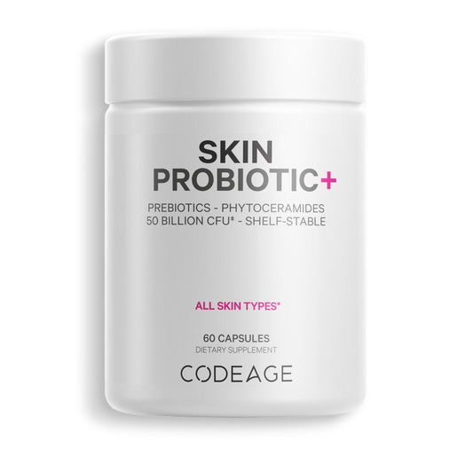 Codeage Skin Probiotics 50 Billion CFU & Prebiotics, Skin Ayurvedic Botanical Herbs, Shelf-Stable, 60 Ct