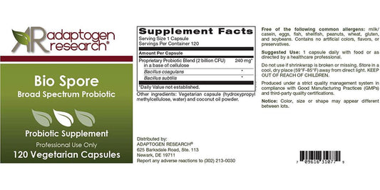Bio Spore Broad Spectrum Probiotic | Soil-Based (SBO) and Shelf-Stable 2 Billion CFU Bacillus Coagulans and Subtilis Spore Forming Probiotic for Men and Women | 120 Vegetarian Capsules | Adaptogen Research