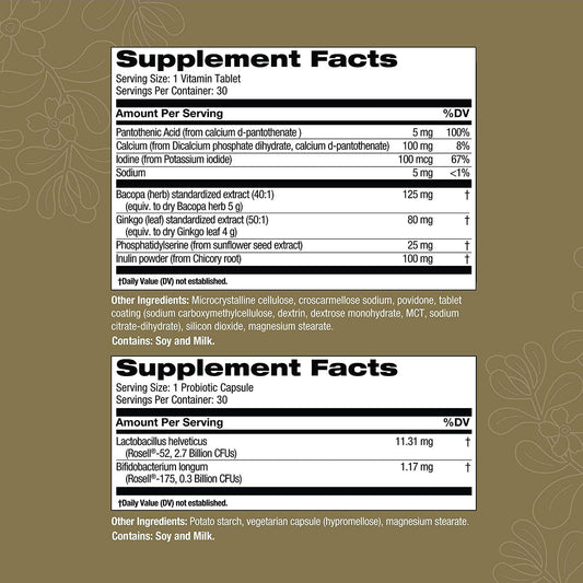 Brain Health Probiotics 3 Billion CFU |Probiotics for Women, Probiotics for Men and Adults, Alleviate Mental Stress, Supporting Cognitive Function, Natural | Shelf Stable | 30 Servings