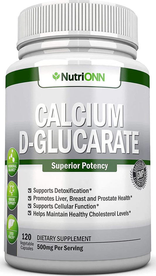 Calcium D-Glucarate - 500mg - 120 Vegetable Capsules - Superior Potency To Support Liver Detoxification, Estrogen Metabolism and Hormonal Balance- Helps With Weight Loss, Prostate, Breast and Colon Health