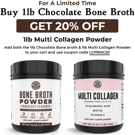Bone Broth Powder, 2lb Pure Grass Fed Beef Bone Broth Protein Powder. Unflavored, Contains Collagen, Glucosamine and Gelatin, Paleo Protein Powder, Keto, Gut-Friendly, Non-GMO, Dairy Free. 32oz