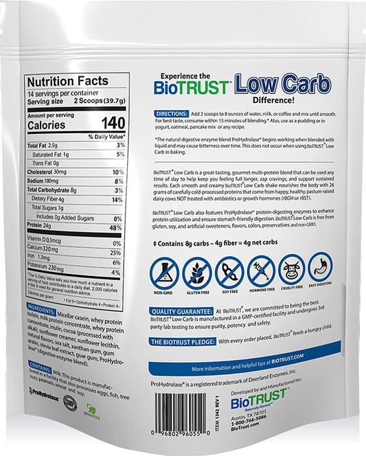 BioTrust Low Carb Natural and Delicious Protein Powder Whey and Casein Blend from Grass-Fed Hormone Free Cows, Non GMO, Soy Free, Gluten Free, Hormone and Antibiotic Free (6 Flavors) (Cafe Mocha)