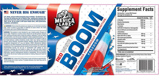 'Merica Labz Red, White, and Boom, High Caliber Pre Workout with VasoDrive-APÂ , 350mg Caffeine, Max Energy, Pump and Focus, Increased Blood Flow and Muscle Volume, 20 Servings (Freedom)