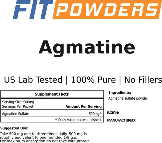 Agmatine Sulfate Powder 100g (100 Grams, 200 Servings) 100% Pure, Strength and Pump (Nitric Oxide) Supplement by FitPowders