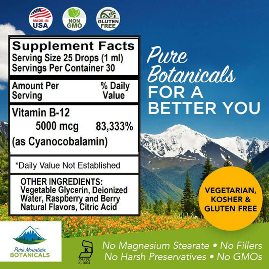 B12 Vitamin 5000 mcg – Kosher B12 Drops in 1oz Bottle with Natural Berry Flavor