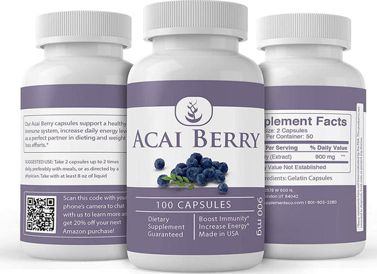 Acai Berry (100 Capsules) 100% Pure and Natural, Non-GMO and Gluten-Free, Made in The USA (900 mg Serving)