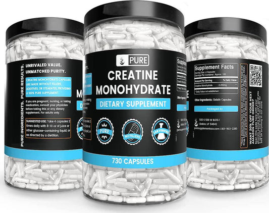 Creatine Monohydrate, 730 Capsules, 2 Month Supply, No Magnesium or Rice Filler, Gluten-Free, Potent, Made in US, 2200 mg Pure and Undiluted Creatine Monohydrate with No Additives