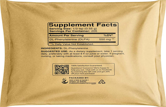 DL-Phenylalanine Powder (4 oz) DLPA Amino Acid Supplement, Mood, Brain Health, No Additives or Fillers