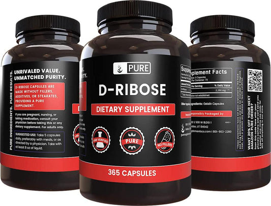 D-Ribose Capsules (365 Capsules) Lab Tested, Heart Health (2250 mg per Serving)
