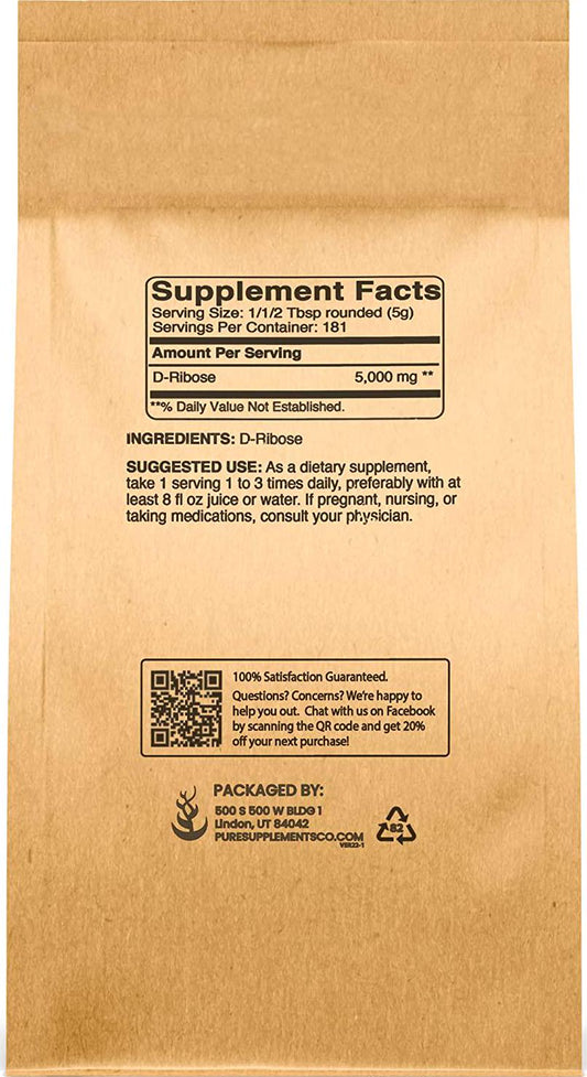 D-Ribose Powder, 2 lb, 5000 mg Serving, Premium Quality Nutritional Supplement, Non-GMO, Gluten-Free, Unflavored, Made in USA, Naturally Potent, No Additives, Eco-Friendly Packaging