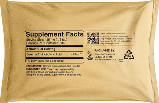 Gamma Aminobutyric Acid (GABA) Powder (8 oz, ¼ TSP per Serving) by Pure Organic Ingredients, Healthy Mood and Sleep Cycle*, Ease Stress and Relax*, Relieve PMS Symptoms*, Eco-Friendly Packaging