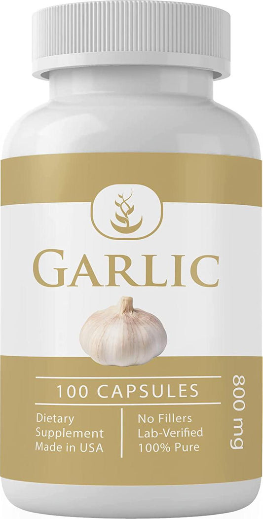 Garlic Capsules (100 Capsules, 800 mg/Serving) by Pure Organic Ingredients, Blood Pressure Health, Pure Aged Garlic, Garlic Bulb, Allium Sativum, Satisfaction Guarantee