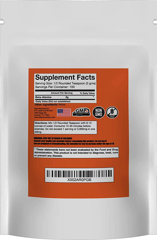 Beta Alanine Powder. Bulk Pre Workout Supplement by Fit Lane Nutrition. 3000mg per Serving. Pure Powder. Best Value. 300 Grams Unflavored.