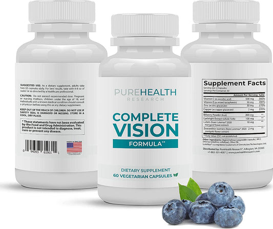 Complete Vision Formula by PureHealth Research - 8 Natural Eye Hero Nutrients to Enhance Eye Function and Vision – Potent, Targeted, Protective and Regenerative, 3 Bottles