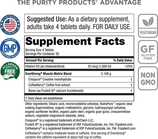 EverStrong - Muscle Matrix Blend - Creapure Creatine - Boron (FruiteX-B PhytoBoron) - CoffeeBerry Extract - Boosted with 1000 IU Vitamin D - 120 Tablets from Purity Products