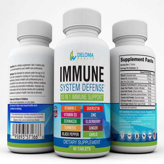 10 in 1 Immune System Support Supplement with Vitamin C, Quercetin, D3, Zinc, Elderberry, Echinacea, Turmeric, Ginger, Black Pepper and Garlic by Deloma Health