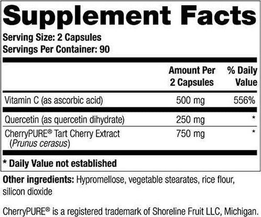Cerasus CQ Tart Cherry Supplement with Vitamin C and Quercetin (90 Day Supply - 180 Capsules)