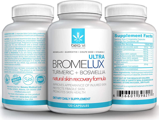 BROMELUXE ULTRA Anti-Bruising Supplement I Bromelain and Quercetin with Turmeric and Boswellia: Swelling and Bruise Relief, Anti-Inflammatory Treatment I For Recovery After Surgery and Trauma I 120 Caps