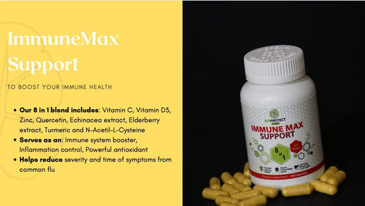BioProtect Immune Max Support - 8 in 1 Special Blend That Includes Vitamin C, D, Zinc, Quercetin, Elderberry, Turmeric and More! - 60 Immune Support Capsules - Vegan - Organic and Ethically Sourced