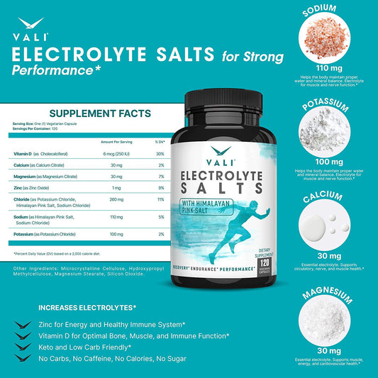 Electrolyte Salts Rapid Oral Rehydration Replacement Pills, Hydration Minerals for Active Fluid Recovery Health - Sodium, Potassium, Magnesium, Calcium, Vitamin D3, Himalayan Pink Salt, 120 Capsules