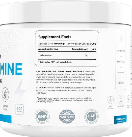 5X Strength L Glutamine Powder (5000mg | 1KG) 6-Month Supply Pure L-Glutamine Supplement for Leaky Gut Health, Gastrointestinal Lining Support and Recovery for Women/Men - Vegan, Gluten Free, No Fillers