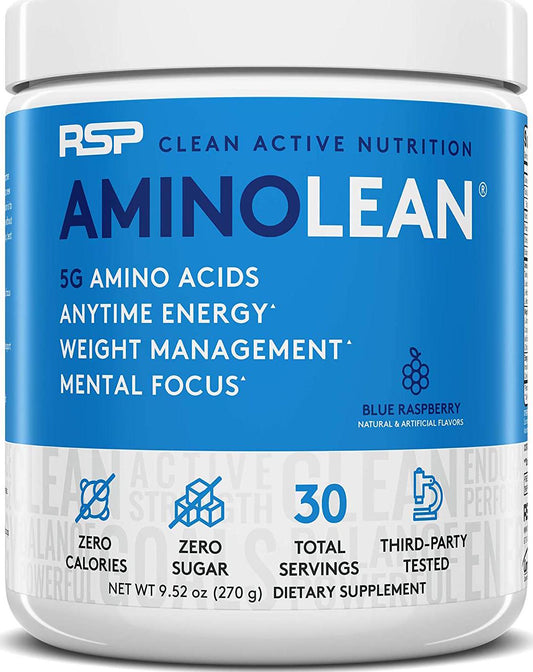 AminoLean Pre Workout Energy (Blue Raspberry 30 Servings) with AminoLean Recovery Post Workout Boost (Tropical Island Punch 30 Servings)