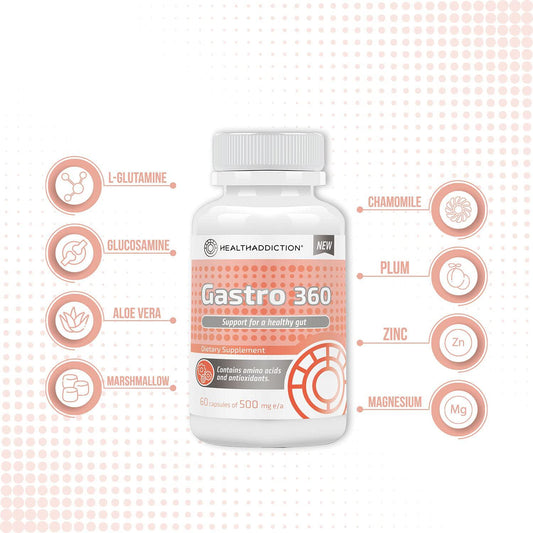 Dietary Supplement Gastro 360 Healthaddiction I Helps to Reduce Intestinal Inflammation, Gastritis, Colitis and Reflux I Acts As A Natural Antiacid I L Glutamine, Glucosamine, Chamomille I 60 Capsules