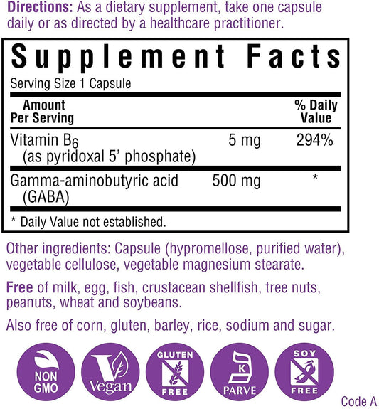 Bluebonnet Nutrition GABA 500mg, for Stress Relief*, Supports Relaxation*, Kosher, Vegan, Gluten-Free, Soy-Free, Non-GMO, 120 Count, 120 Servings