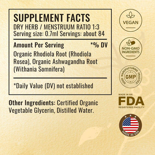 Adrenal Health Liquid Extract 2 fl oz | All-Natural Adrenal Supplement | Herbal Formula | Cortisol Manager with Ashwagandha and Rhodiola Rosea | Anxiety and Stress Relief | Mood Booster