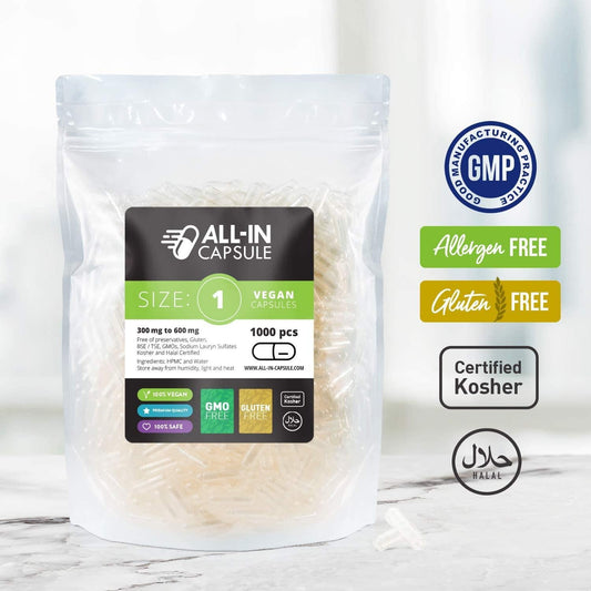 ALL-IN Capsule - 1000 Count Clear Empty Vegetarian Capsules - Compatible with Capsule Filling Machine - Fillable with Powders of Your Choice (1)