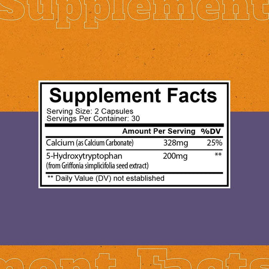 5-HTP 200mg with Calcium - Naturally Supports Serotonin Levels to Promote Relaxing Sleep, Better Rest, and a More Positive Mood - Plant-Based and Derived from Griffonia Extract
