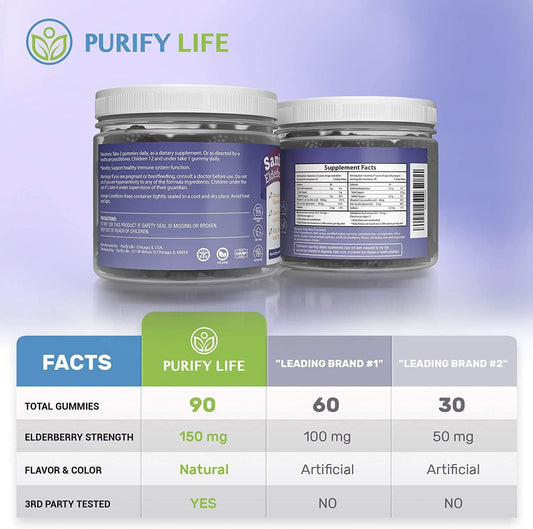 Elderberry Gummies for Kids and Adults - Sambucus Immune System Booster (90 Gummies) Allergy Cold Relief Support Supplement - Chewable Vitamin C Zinc Multivitamin - Replace Capsules, Tea, and Syrup