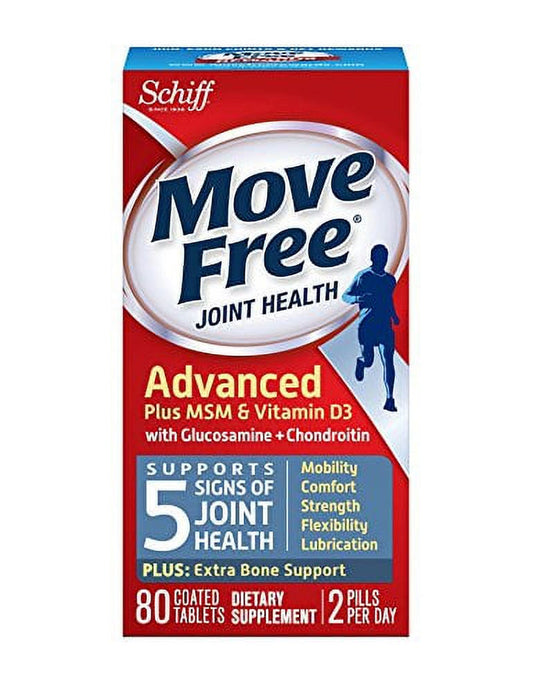 2 Pack Move Free Joint Health Advanced plus MSM & Vitamin D3 80 Tablets Each