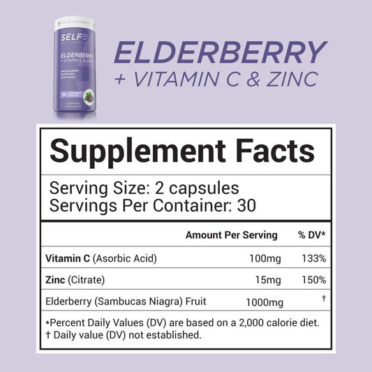 1000mg Premium Elderberry Pills for Adults w/Vitamin C and Zinc for Added Immune Support - Vegan Friendly and Gluten Free - 60 Capsules