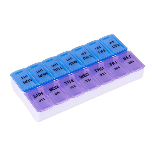 Apex Twice-A-Day (AM/PM) Weekly Pill Organizer, Medicine Organizer with See-Through Lids