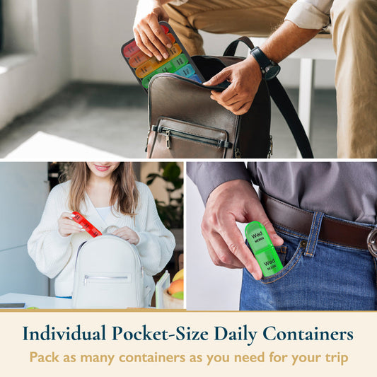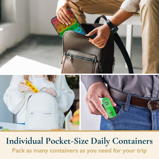 AUVON 7 Packs Extra Large Pill Organizer, Portable Pill Box 7 Day for Pocket, Purse, Weekly Pill Case with Dual-Protection Design, Pill Container for Medication, Vitamin, Fish Oil, Supplement
