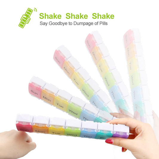 7 Days Weekly Health Care Spring Pill Box Organizer Portable 4 Times a Day Medicine Vitamin Storage Dispenser Cutter Container Colorful Drug Cases Holder for Travel