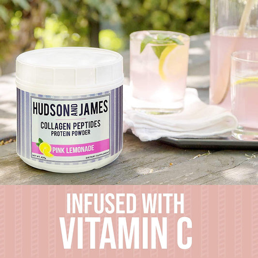 Collagen Peptides, Hydrolyzed Collagen Protein Powder, Collagen Peptides Powder Supplement with Vitamin C, Pink Lemonade, 420g - Hudson and James