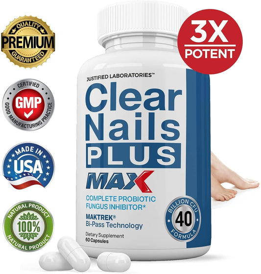 (3 Pack) Clear Nails Plus Max Pills 40 Billion CFU Probiotic Supports Strong Healthy Hair Skin Nails 180 Capsules