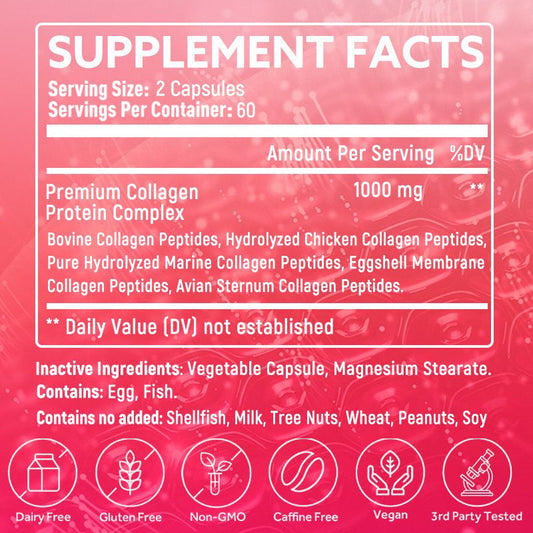 Bcuelov Collagen Complex Types I, II, III, V & X - Contains Pure Hydrolyzed Marine Collagen Peptides - for Skin, Nails, Hair, Gut, Joint Health