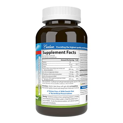 Carlson - Chelated Minerals, Balanced Blend - Maximum Absorption, Optimal Wellness, Bone Health and Tissue Development, 180 soft gels