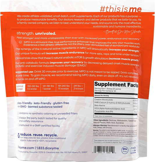 Dioxyme MPO - Muscle Performance Optimizer Produces Anabolic Growth, Increased Strength and Endurance. Stimulant Free. (Blue-Razz Flavor)