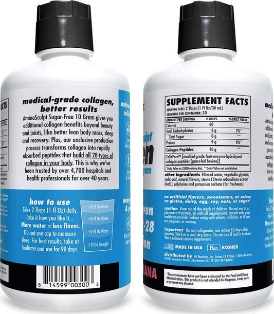 AminoSculpt Collagen Sugar-Free 10 Gram, Strawberry Banana, 30 Fl Oz by Health Direct