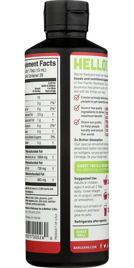Barlean's Organic Oils Seriously Delicious Strawberry Banana Smoothie from Flax Oil with 2,968 mgs of Omega-3 -Vegan, All Natural Fruit Flavor, Non-GMO, Gluten Free - 16-Ounce, Default