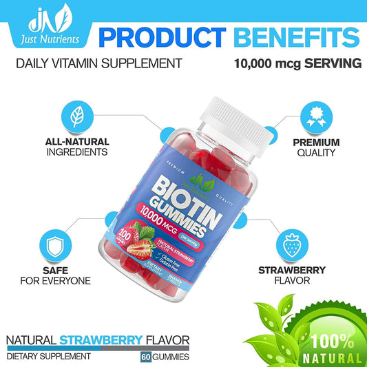 (80 Gummies) Biotin Gummies 10,000 mcg, Hair Skin and Nails Gummies, Hair Growth Gummies for Women Men, Vegan, Non-GMO, Pectin-Based, Delicious Strawberry Flavor, Mountain Valley