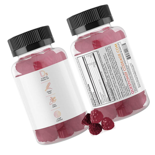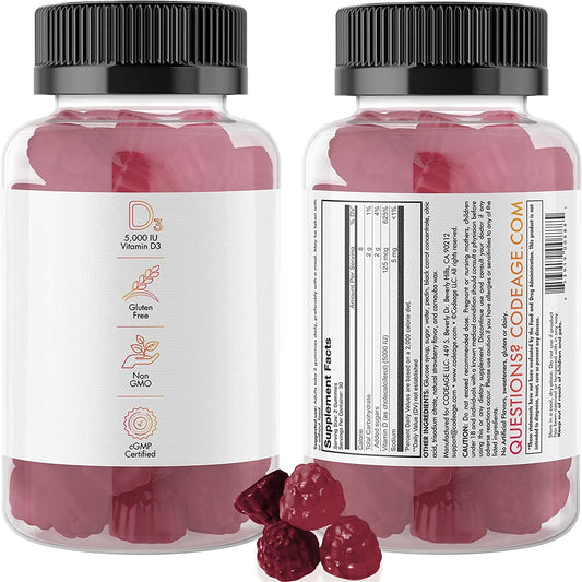 Codeage Vitamin D3 Gummies, Pectin-Based Chewable Vitamin D 5000 IU, Strawberry Flavor Vitamins Gummy, 60 Ct