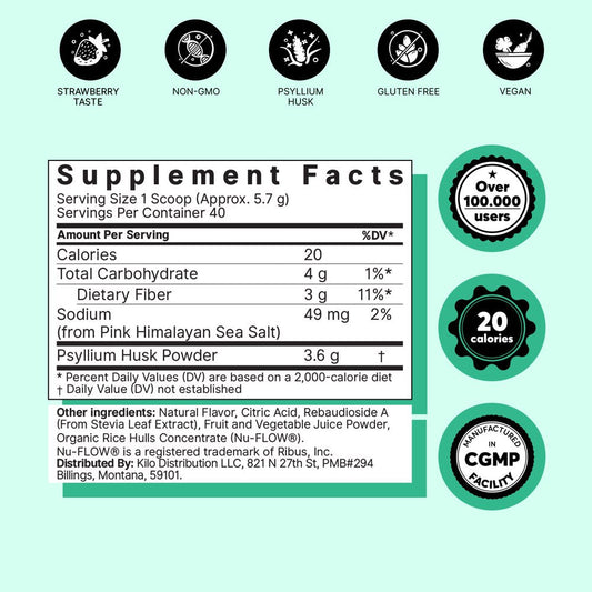 Colonbroom Psyllium Husk Powder Colon Cleanser - Fiber Supplement, Strawberry Flavor, 40 Servings