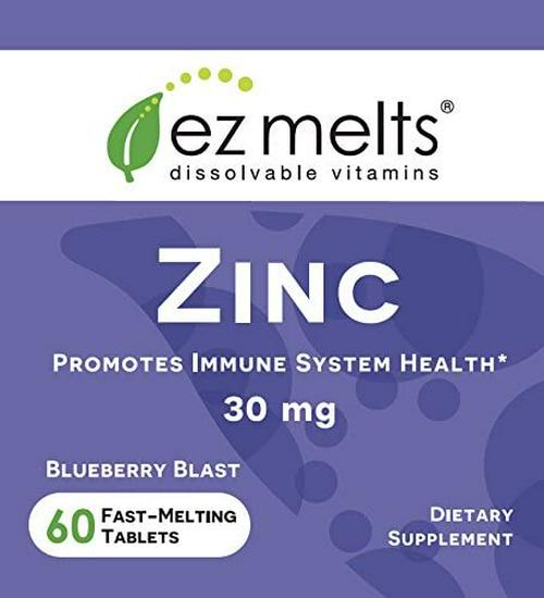 EZ Melts Zinc for Immune Support, 30 mg, Sublingual Vitamins, Vegan, Zero Sugar, Natural Blueberry Flavor, 60 Fast Dissolve Tablets