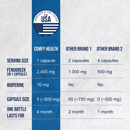 COMFY HEALTH Fenugreek Capsules, 2410Mg per Capsule, 120 Count, Fenugreek Pills with Bioperine for Superior Absorption, Non-Gmo, Gluten Free Fenugreek Seeds Extract Supplements, Fenogreco Capsulas