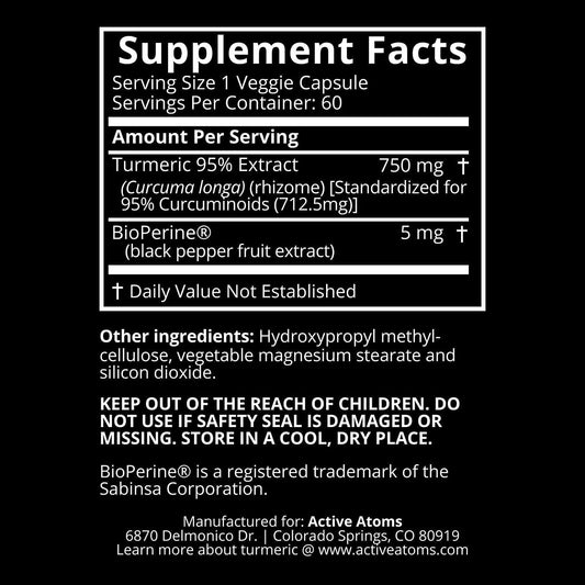 Active Atoms:Turmeric - Anti Inflammatory Support - 60 Capsules - Highest Potency Curcurmin, Superior Absorption, Third Party Tested